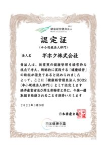 • 健康経営優良法人2022 中小規模法人部門での認定をいただきました!
